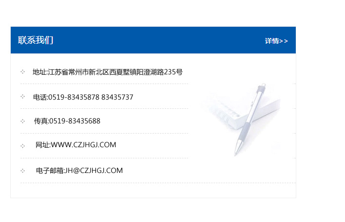 地址:常州市新北區友邦商務大廈1幢16、17層  電話:0519-85101652  傳真:0519-85112595  郵編:213022  網址:www_cz-jiayue_cn.chenshuochuangtou.com  郵箱:xiajifengaa@163.com